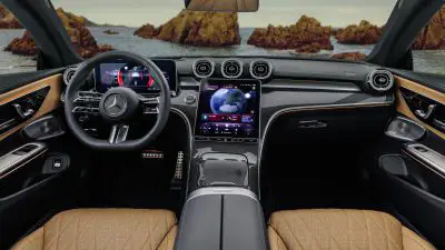 En el interior, llama la atención la pantalla de instrumentación independiente de 12’3 pulgadas, totalmente digital, la pantalla central de 11’9 pulgadas, orientada al conductor en disposición vertical de fácil manejo y, la iluminación ambiental dinámica con 64 colores. Si se desea, puede extenderse desde la consola central hasta debajo de las salidas de aire exteriores. En cada una de las puertas, una franja de luz recorre el contorno del reposabrazos y la línea de cintura hasta la parte trasera. Otro elemento destacado, son los asientos delanteros de diseño deportivo integral, desarrollados exclusivamente para el CLE. En combinación con el sistema opcional de sonido envolvente 3D Burmester, cada uno de ellos con dos altavoces a la altura de los reposacabezas, se crea una experiencia musical especialmente individual y envolvente, con Dolby Atmos y Spatial Audio cerca de los oídos.