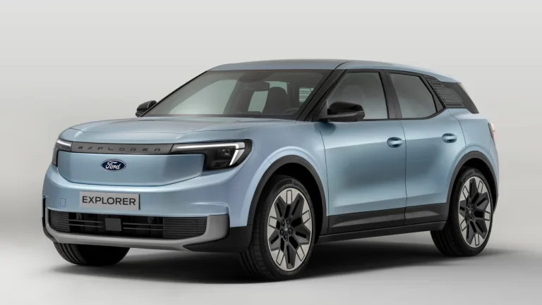 El Explorer adopta una postura más robusta. Los faros LED con forma de cuchilla, están conectados por una pieza de moldura que el diseñador principal, Jordan Demkiw, llama el panel «de costa a costa» del automóvil. Hay una placa protectora plateada y un revestimiento de la carrocería que recorre todo el largo del automóvil, lo que ha permitido reinterpretar el atractivo firme y resistente del icónico SUV de Ford, específicamente para los clientes en Europa.