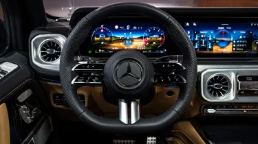 Mercedes ha buscado conservar el estatus legendario del G-Wagen y hacer que el modelo 2024 sea aún más capaz todoterreno. Hay nuevos modos de conducción: ‘Trail’, ‘Rock’ y ‘Sand’, tres bloqueos mecánicos del diferencial con la combinación de suspensión delantera de doble horquilla y eje trasero rígido. La configuración de suspensión adaptativa, es estándar en toda la gama.