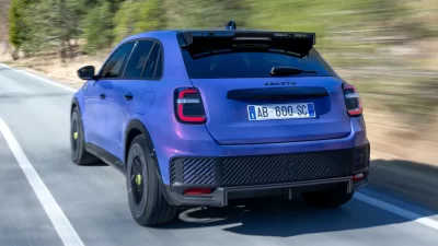 Abarth no es partidario de un estilo sutil, por lo que el 600e tiene un parachoques delantero muy cuadrado, que pretende emular el del auto de carreras Abarth 850 TC de los años 60. También hay un parachoques igualmente grueso en la parte trasera, además de un gran difusor y un alerón de techo. Las llantas de 20 pulgadas con corte de diamante del 600e, están envueltas en neumáticos Michelin Pilot Sport EV, y las opciones de pintura vívidas incluyen «Acid Green» y «Hypnotic Purple».
