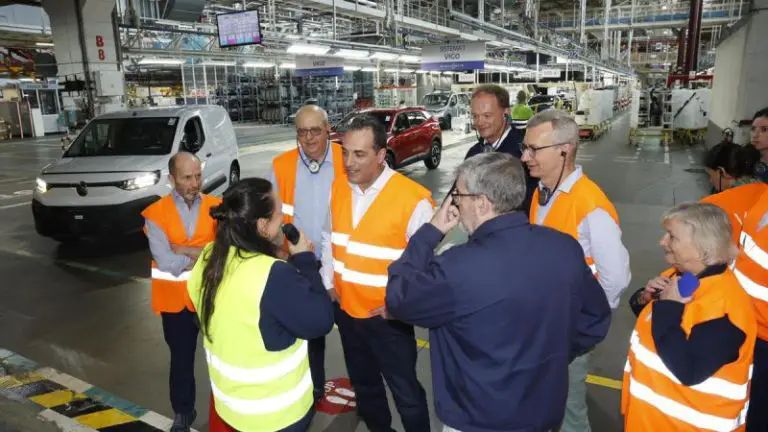 Posteriormente, acompañados por José Luis Alonso Mosquera, Stellantis Vigo Plant Manager, y otros responsables, realizaron un recorrido por la factoría, visitando las áreas de Calidad, Pintura, Montaje y Soldadura de Caja.