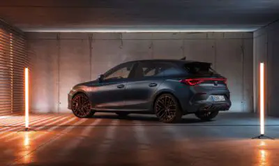 Su diseño exterior se presenta más radical al integrar de serie llantas de 48 cm (19’’) en tonos negro y Copper, faldones laterales CUPRA, o el spoiler trasero en fibra de carbono (para la versión 5 puertas). El habitáculo es ahora más emocional gracias a la gran presencia de los nuevos asientos deportivos CUPBucket de aspecto realmente deportivo, el volante con botones satélite, pespuntes en color Copper por todo el salpicadero, y el techo panorámico practicable.