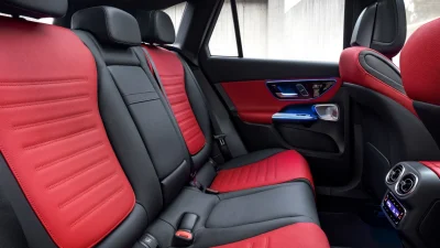 La parte trasera tiene una imagen familiar, evolucionada suavemente sobre el modelo actual. Se puede optar por una mayor diferenciación a través de la elección de los estribos, y para los modelos AMG Line y superiores, un paquete de estilo Night, presenta detalles exteriores negros. Mide 4’716 metros de largo, 60 mm más largo que el modelo anterior y es 4 mm más bajo. Los anchos de vía delanteros y traseros se expanden en 6 mm y 23 mm respectivamente, pero en realidad el nuevo modelo no es más ancho que su predecesor.