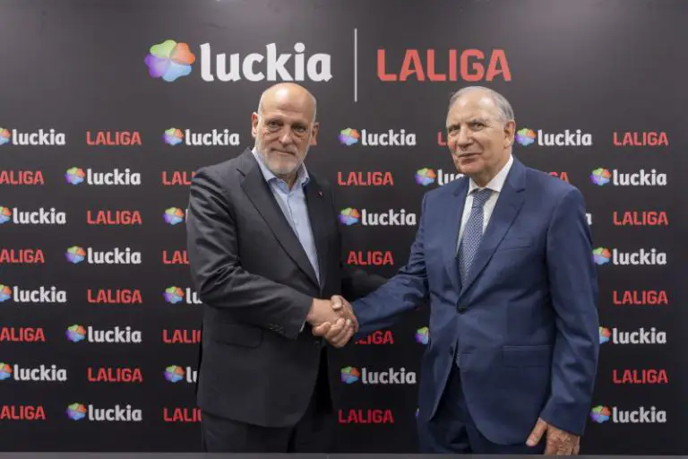 Luckia y LALIGA plasman su acuerdo con la firma entre José González y Javier Tebas